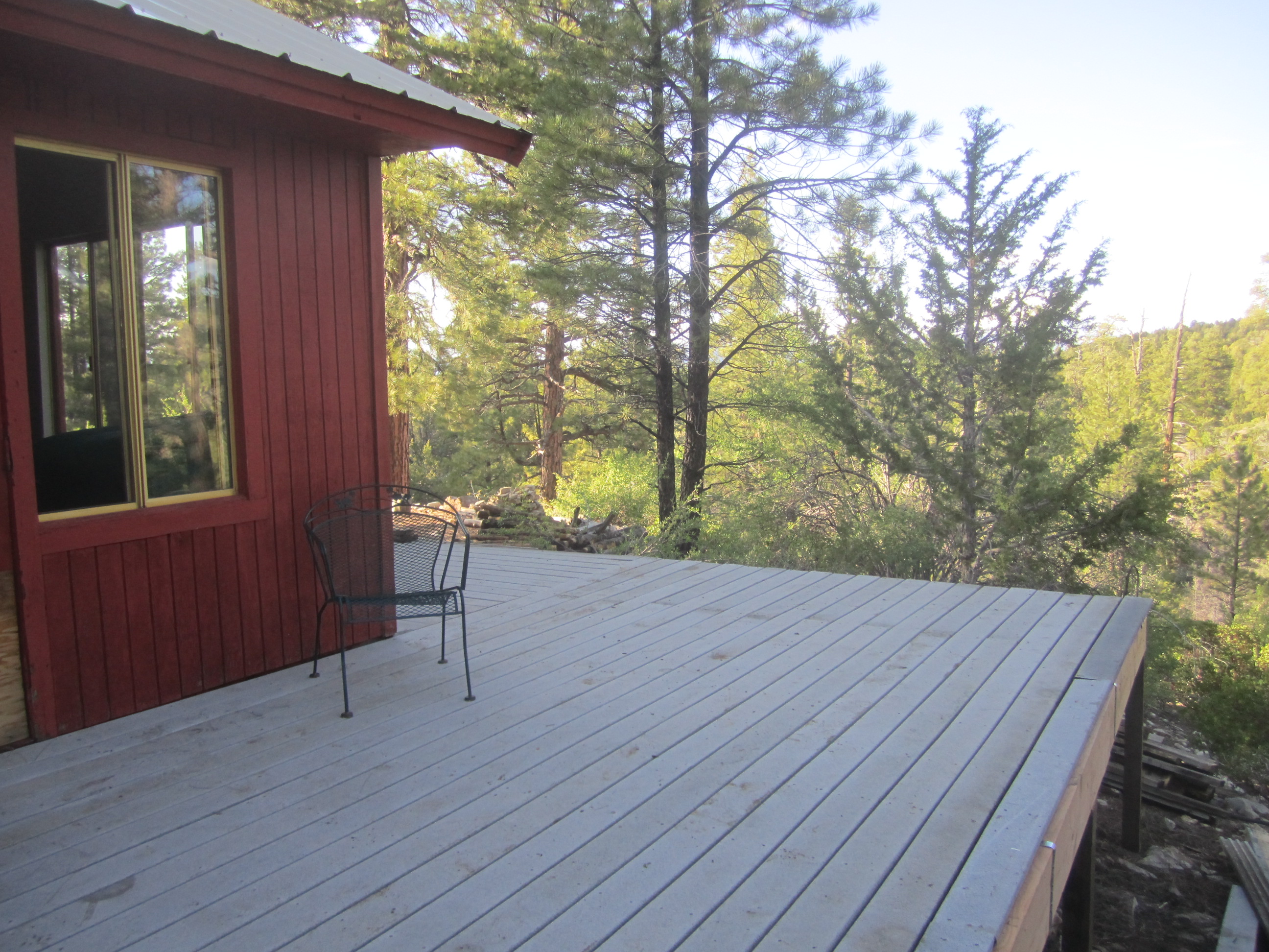 The Snow load this past winter collapsed our deck and split every one of the 2×6 joists. So we had to tear out the old one and start from scratch. Fortunately Ben Rogers and Jon Lee stepped in with their tools (thanks Jefferson for your tools, trailer, and truck too) and their construction experience and expertise. Although it rained and the roads were rutted mud slogs, we still were able to complete the project in just one day. Luckily we were able to use the old Trex decking which saved tons on the cost. So now the deck is ready for our first cabin guests of the season.